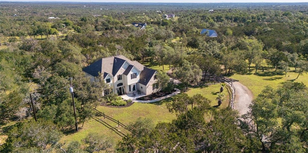 Welcome to this beautifully updated 4-bedroom, 3.5-bathroom home set on a private 10.85-acre property in the desirable Wimberley area. Recently renovated in 2023, this 2,800 sq. ft. home offers an inviting, open floor plan designed for entertaining and a back porch and master balcony perfect for enjoying the surrounding trees and abundant wildlife. The property includes a charming 2-bedroom, 2-bath guest house with a spacious sleeping loft, fire pit, and side sitting area—ideal for short-term rental income or accommodating visiting friends and family.